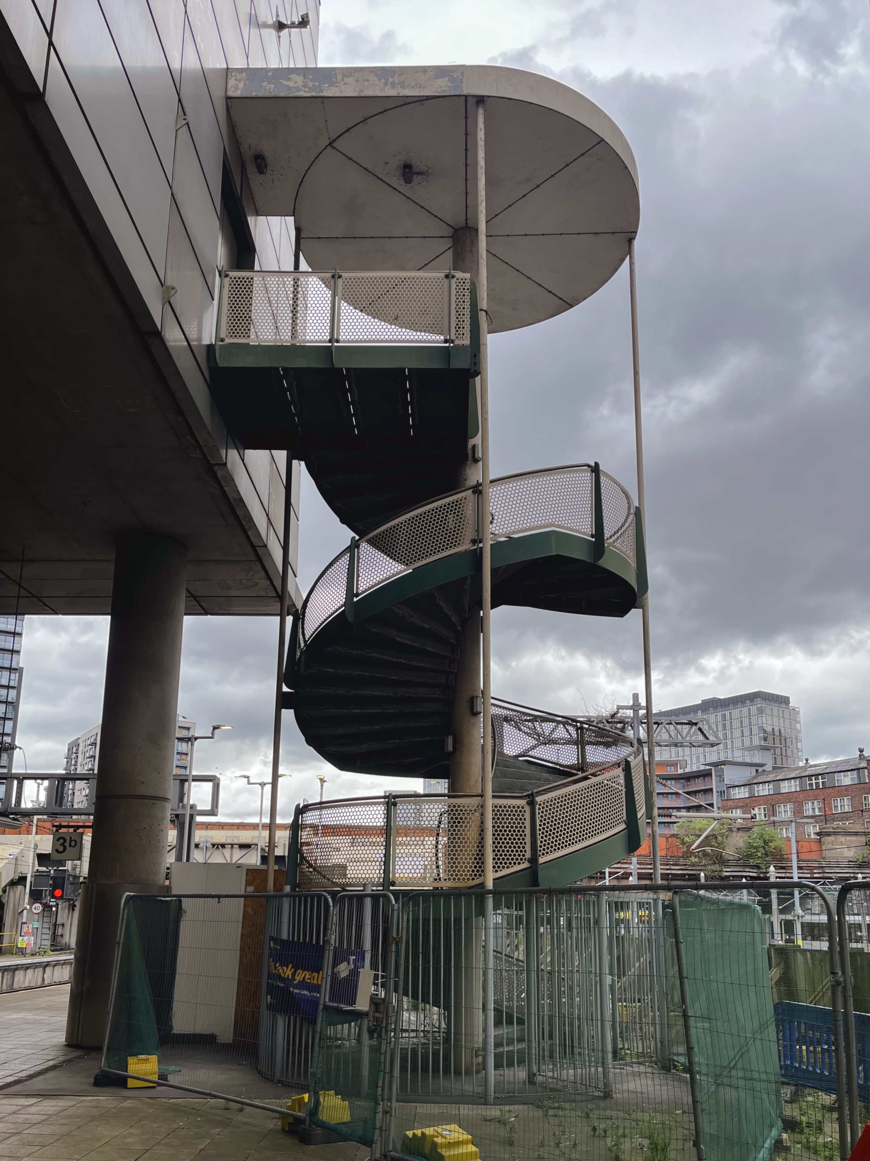 Spiral staircase at Manchester Victoria railway station, 2025